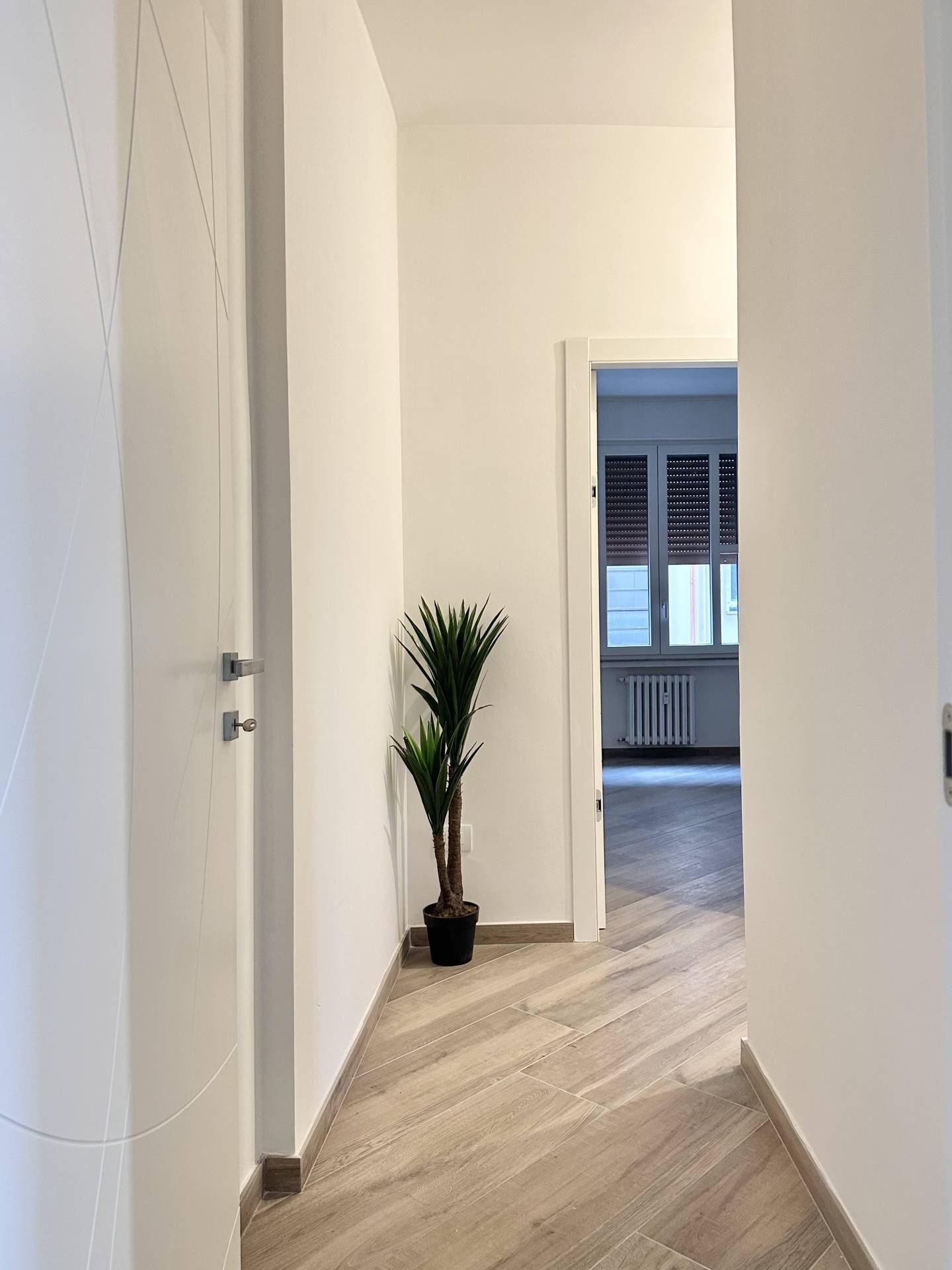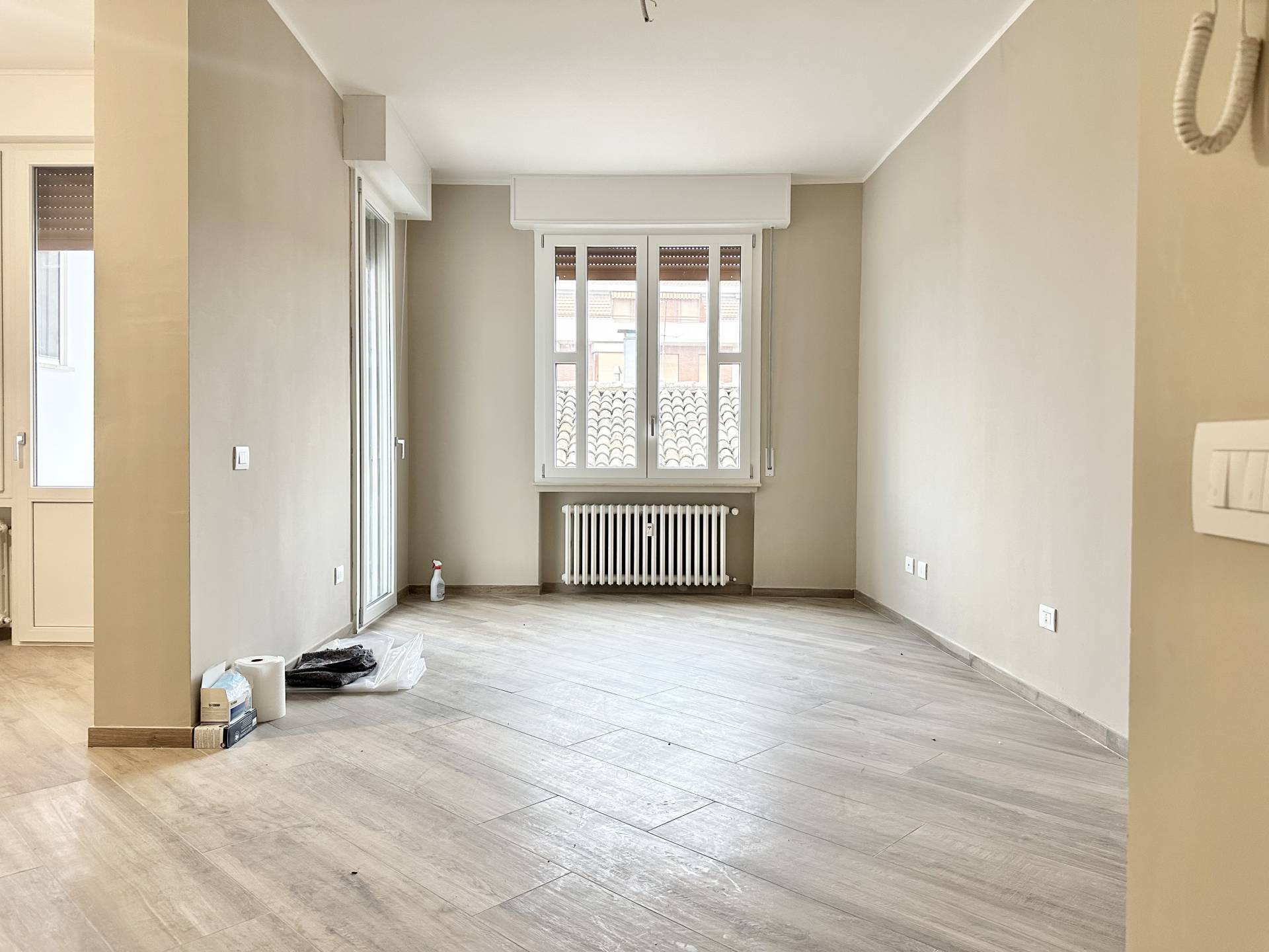 La casa è stata rifinita con materiali moderni e funzionali: infissi in PVC, zanzariere, tapparelle, pavimenti in grès porcellanato effetto legno, predisposizione per l’impianto di climatizzazione. Il riscaldamento è centralizzato con valvole di contabilizzazione, e sia l’impianto elettrico che quello termo-idraulico sono stati completamente rinnovati.