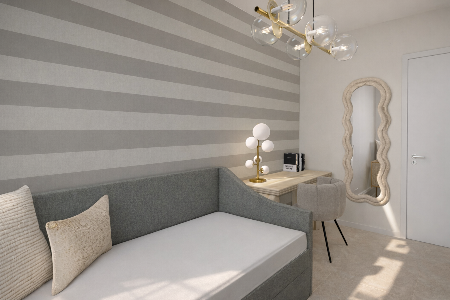 La zona notte, ben disimpegnata, ospita una camera matrimoniale, una camera singola e un bagno, offrendo una distribuzione particolarmente funzionale e adatta sia a una coppia sia a una famiglia.