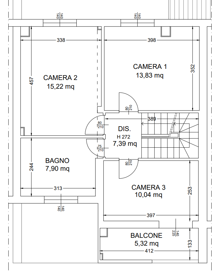 Salendo al piano superiore si sviluppa la zona notte, composta da due camere matrimoniali, una camera singola e un bagno di ampie dimensioni, particolarmente spazioso e funzionale.