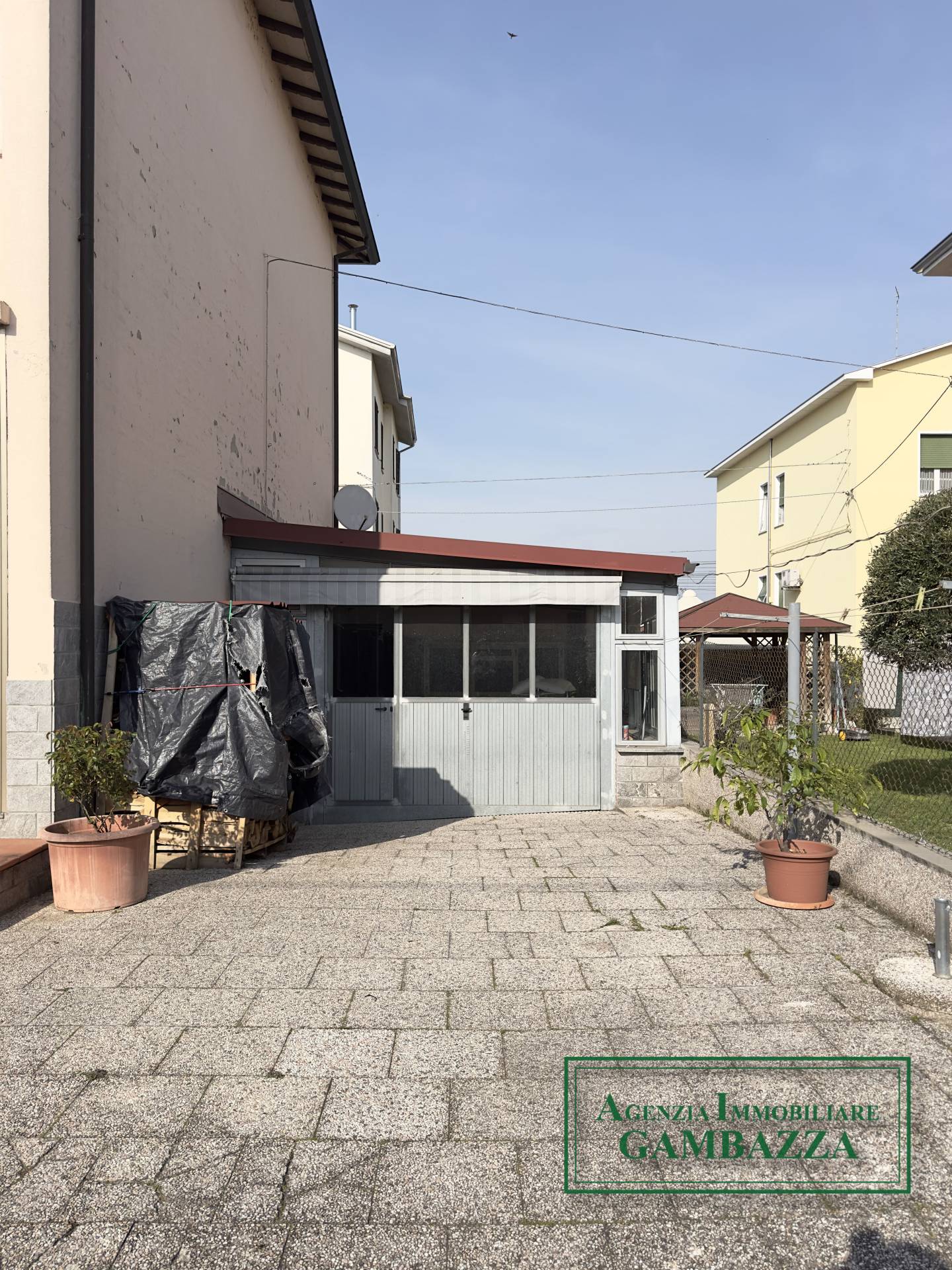 La proprietà è arricchita da una veranda con vetrate, uno spazio estremamente versatile che può essere utilizzato sia come autorimessa sia come ambiente verandato da vivere in diversi momenti dell’anno. Collegata alla veranda si trova inoltre un’ulteriore autorimessa in muratura, che offre ulteriore comodità per il ricovero delle auto o come spazio di deposito.