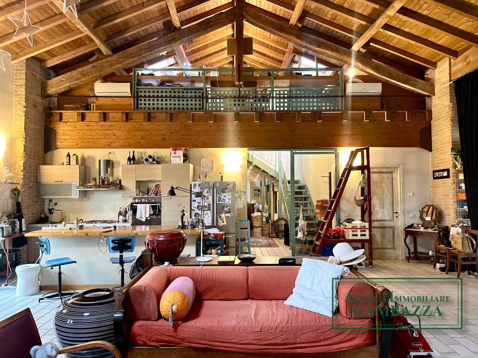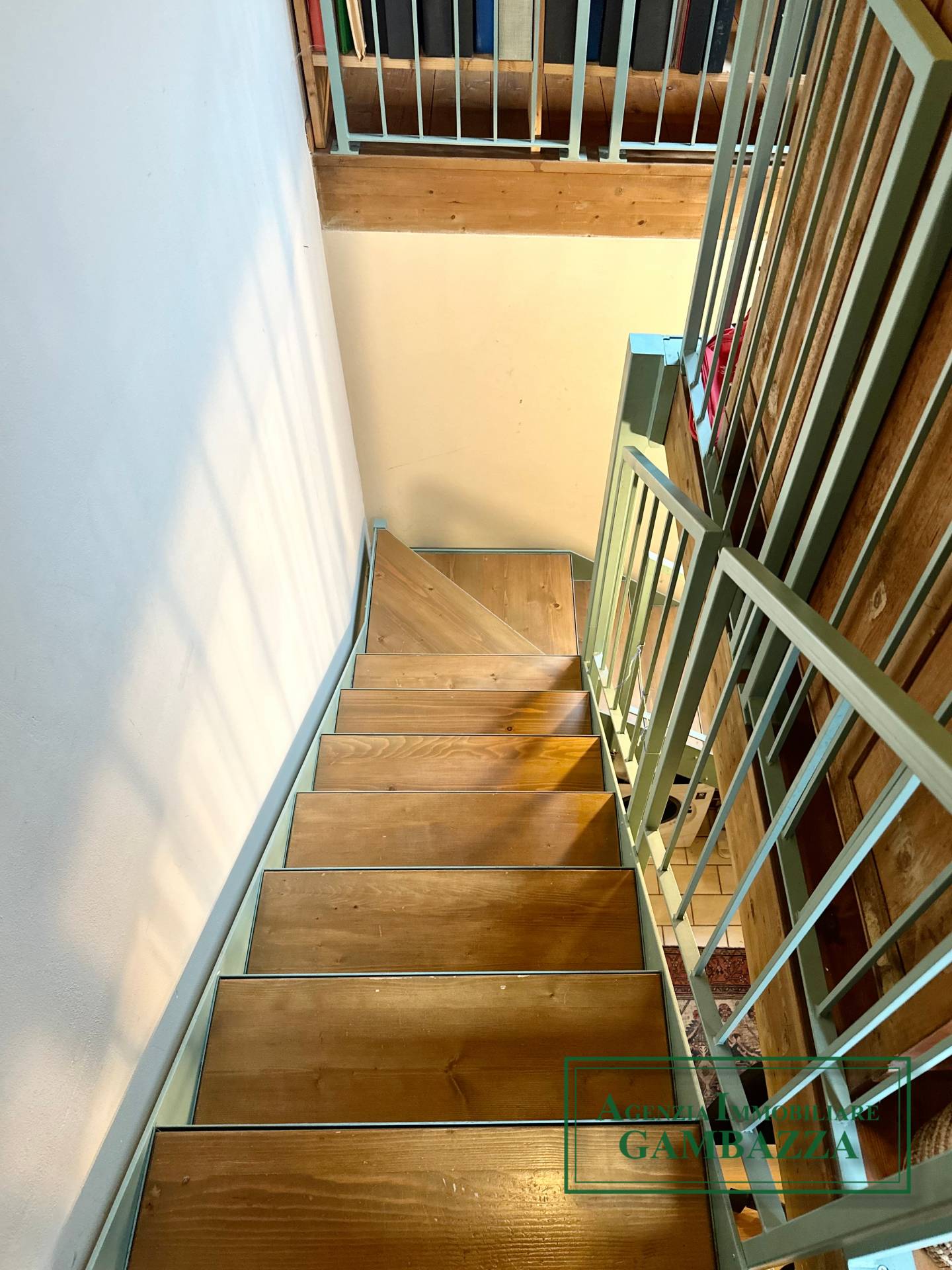Una scala conduce alla parte mansardata soppalcata, non separata dal living, che può essere adattata alle proprie esigenze: perfetta come studio, area hobby oppure come seconda camera.