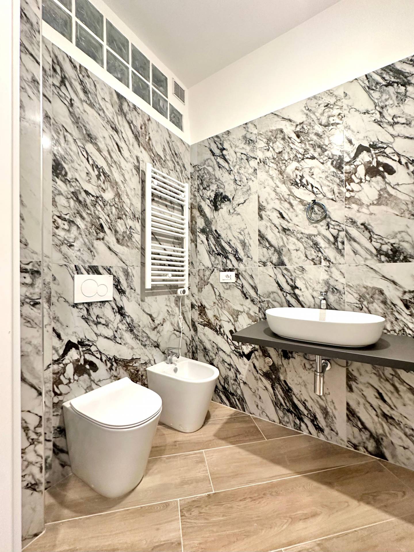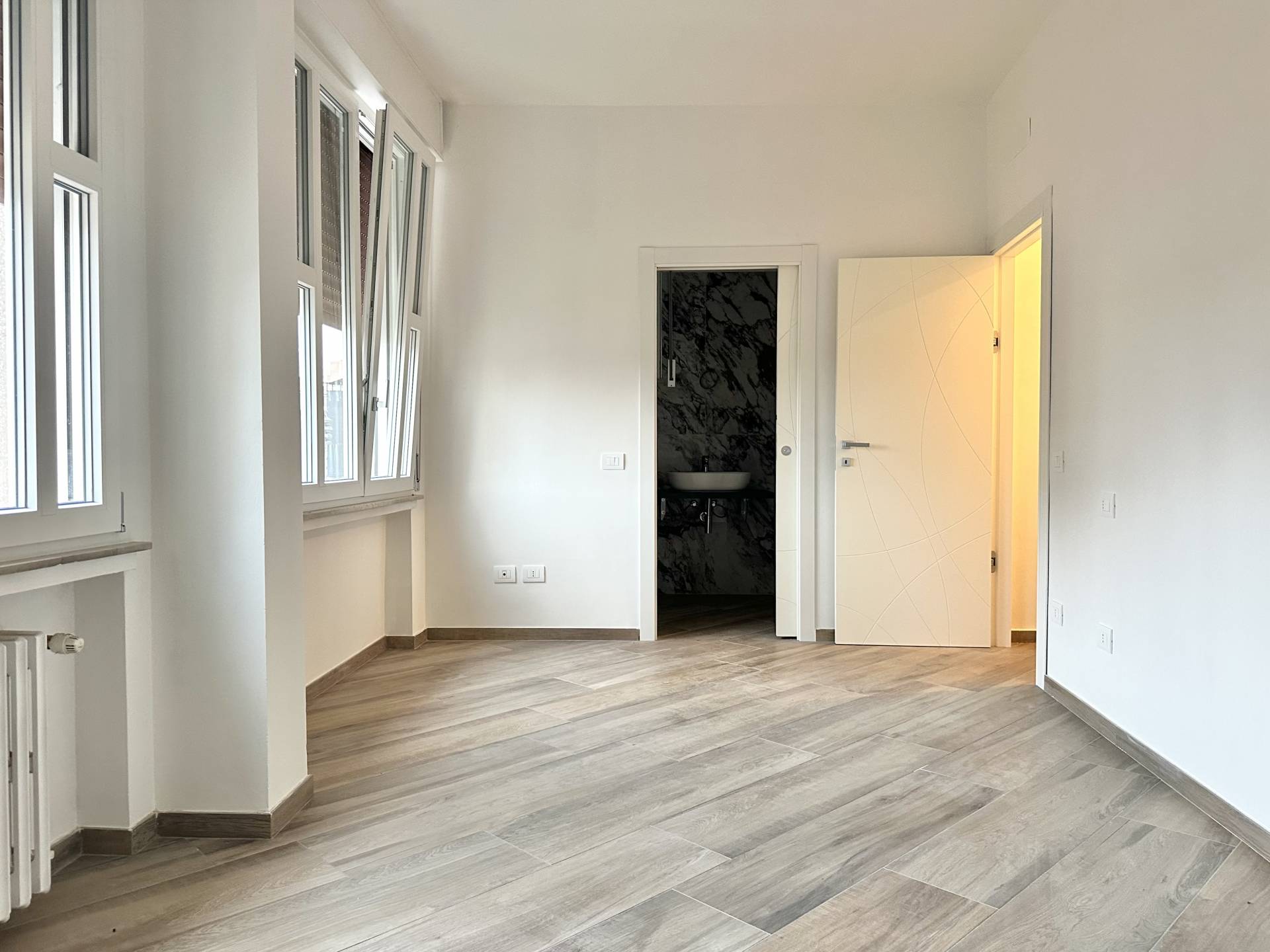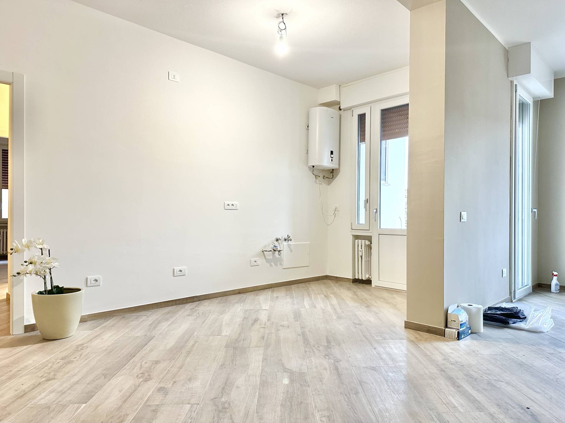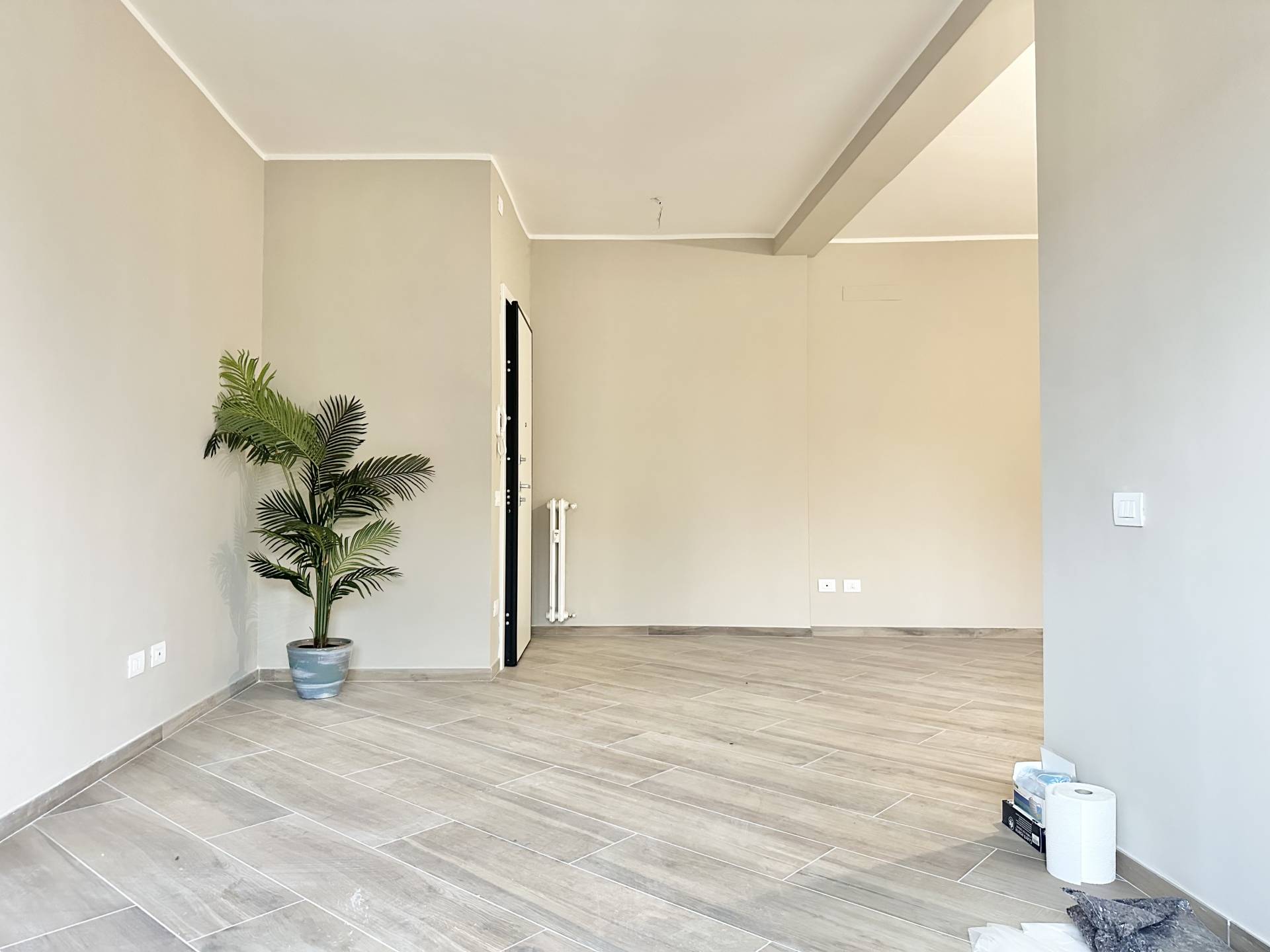 La casa è stata rifinita con materiali moderni e funzionali: infissi in PVC, zanzariere, tapparelle, pavimenti in grès porcellanato effetto legno, predisposizione per l’impianto di climatizzazione. Il riscaldamento è centralizzato con valvole di contabilizzazione, e sia l’impianto elettrico che quello termo-idraulico sono stati completamente rinnovati.