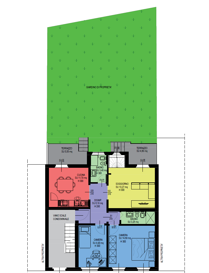 L’immobile, attualmente in fase di ristrutturazione, si sviluppa su un unico livello ed è caratterizzato da una distribuzione razionale e funzionale degli spazi. L’ingresso conduce alla zona giorno composta da cucina abitabile e soggiorno, due ambienti distinti ma ben collegati tra loro, oltre ad un primo bagno. Entrambi godono di uno sfogo esterno: la cucina è servita da un primo balcone, mentre il soggiorno accede ad un secondo. Da entrambi si raggiunge direttamente il vero valore aggiunto della proprietà, ovvero il giardino privato, uno spazio esclusivo e riservato che amplia la vivibilità della casa e rappresenta una soluzione ideale per chi desidera uno sfogo esterno importante.