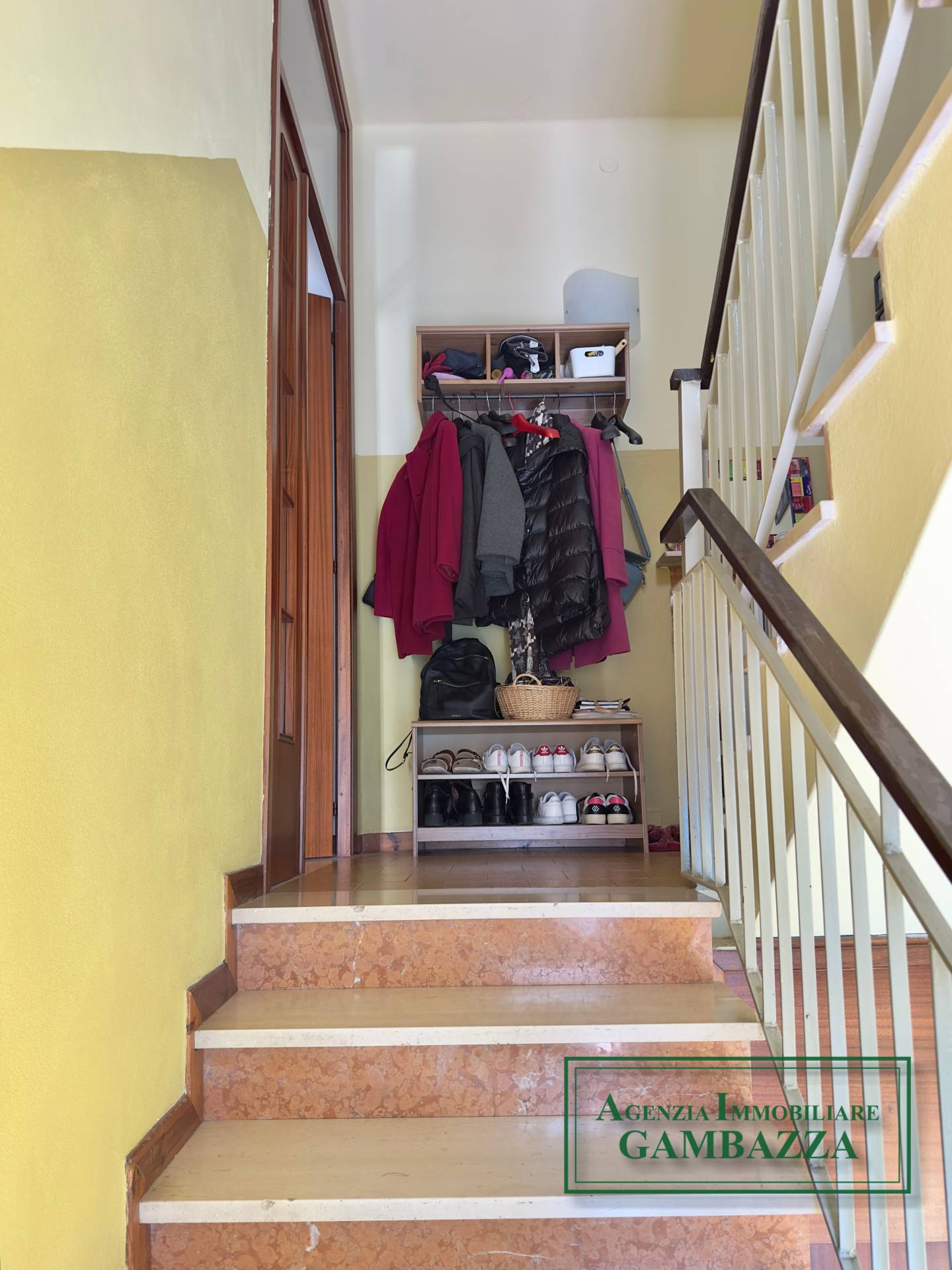 L’ingresso dell’abitazione si trova al piano terra e conduce al vano scala che accompagna ai diversi livelli della casa. Salendo al piano rialzato si accede alla zona giorno, composta da un disimpegno che introduce agli ambienti principali. Qui troviamo un ampio e luminoso soggiorno servito da balcone, ideale come spazio dedicato alla convivialità e alla vita quotidiana, oltre a un comodo bagno di servizio. Completa il piano una generosa cucina abitabile, anch’essa dotata di balcone, uno spazio accogliente e funzionale perfetto per la vita familiare.
