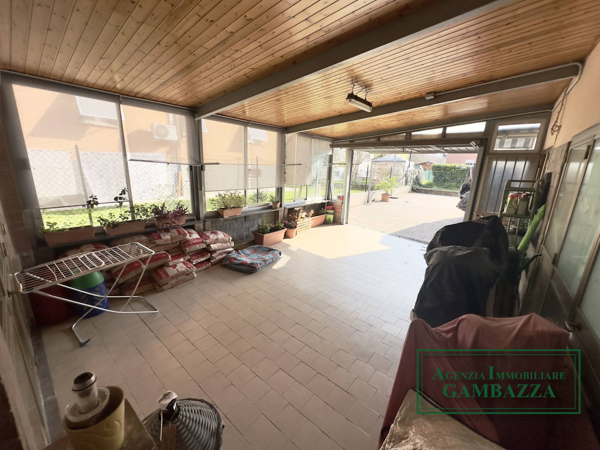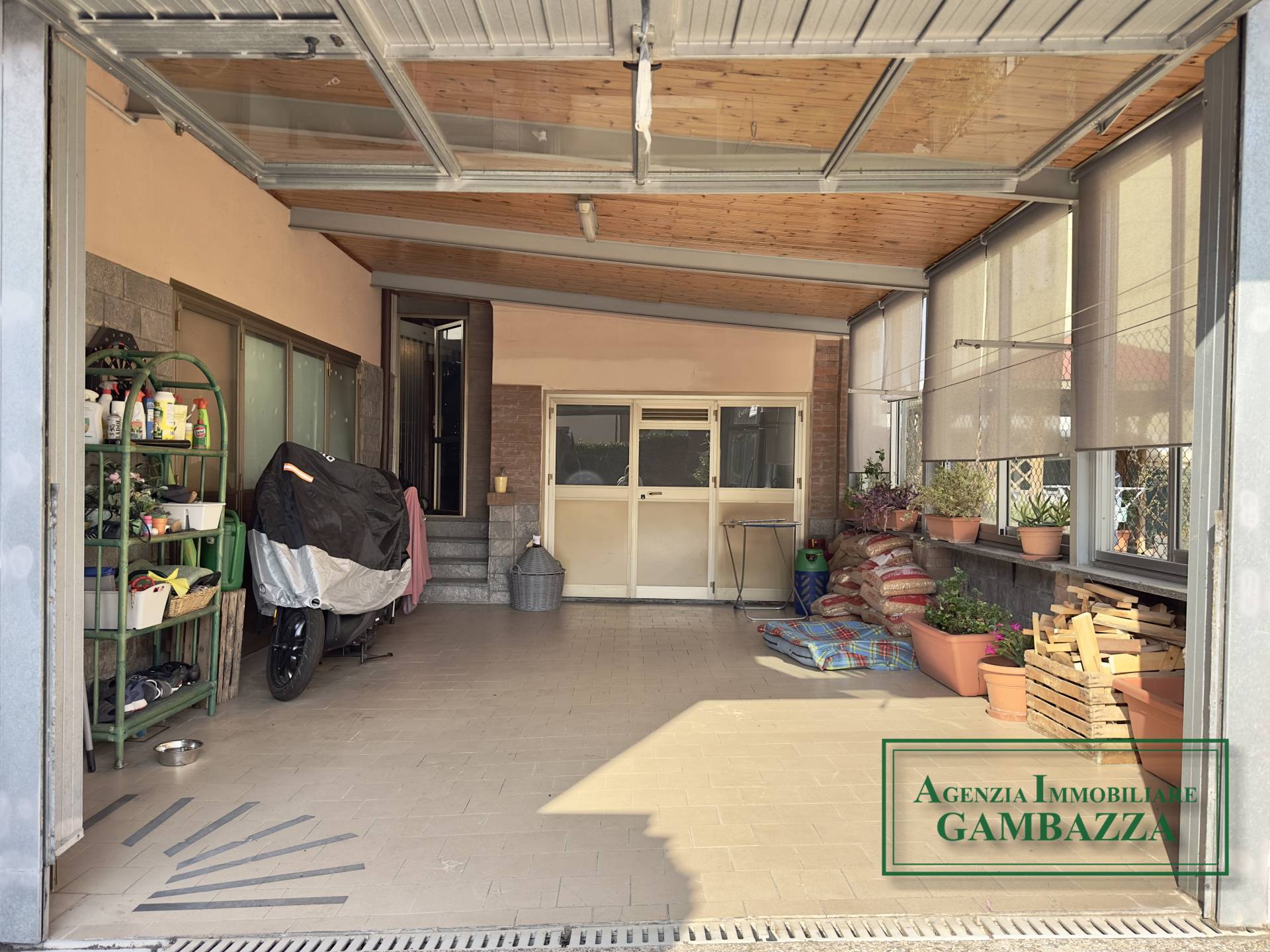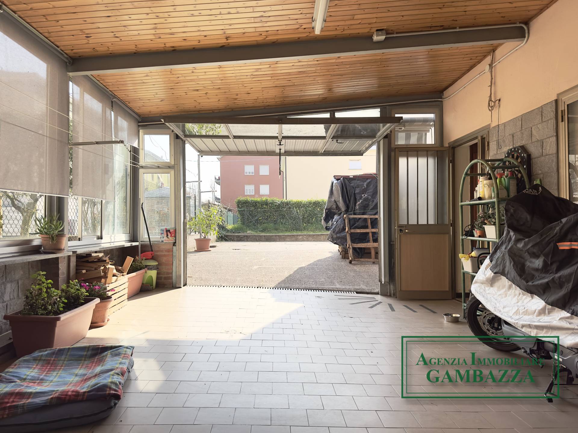 La proprietà è arricchita da una veranda con vetrate, uno spazio estremamente versatile che può essere utilizzato sia come autorimessa sia come ambiente verandato da vivere in diversi momenti dell’anno. Collegata alla veranda si trova inoltre un’ulteriore autorimessa in muratura, che offre ulteriore comodità per il ricovero delle auto o come spazio di deposito.